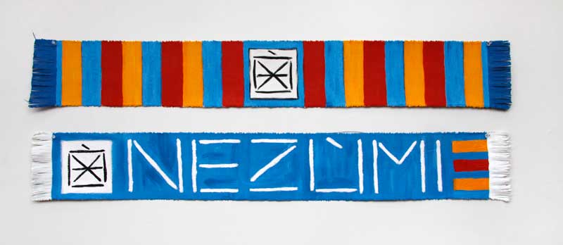 Newzùmi National Team Football Kit 2012 (home and away jerseys) Fabric paint on t-shirt and acrylic on canvas, 2012